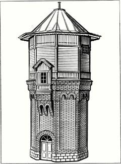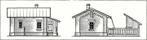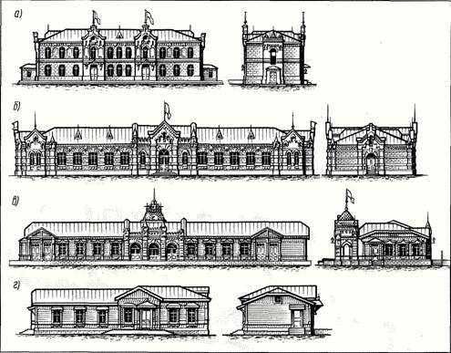 Глава VI ЗДАНИЯ И СООРУЖЕНИЯ НА МАКЕТАХ 1. Основные приёмы изготовления макетов построек Изготовление архитектурных макетов железнодорожных зданий и сооружений является одним из интересных направлений железнодорожного моделизма. Это — кропотливая работа, связанная с изготовлением многих мелких деталей, выполнением различных операций по обработке дерева, пластмасс, металла и других материалов. Многие виды макетных работ трудоёмки и требуют определённых навыков, поэтому начинающим моделистам сначала следует выбирать простые макеты, переходя затем, по мере приобретения опыта, к более сложным. Железнодорожные здания (наиболее специфичные по своим функционально-технологическим признакам) служат для технической эксплуатации железных дорог и состоят из зданий производственного, служебно-технического и служебно-бытового назначения. Архитектурный пейзаж в значительной мере приближает макет железной дороги к действительности. Производственные здания железнодорожного транспорта имеют своеобразную архитектуру и воспроизведение их на макете придаёт ему особый железнодорожный колорит. Естественно, что даже на большом макете невозможно показать весь комплекс сооружений и устройств, имеющихся на настоящей железной дороге, поэтому моделисты стремятся показать наиболее типичные для железнодорожного транспорта производственные и гражданские здания и сооружения. Предприятия, специализирующиеся на изготовлении моделей железных дорог и оснастки, выпускают широкий ассортимент архитектурных макетов железнодорожных зданий и сооружений — вокзалов, локомотивных депо, горочных постов, пассажирских и грузовых платформ, линейно-путевых зданий, пакгаузов и складов, небольших промышленных предприятий, жилых домов и др. Эти макеты выпускают в собранном виде и в виде наборов деталей для самостоятельной сборки. Кроме того, в помощь моделистам выпускают большой ассортимент полуфабрикатов, используемых при постройке архитектурных макетов (листы пластмассы, на которых воспроизведена кирпичная или каменная кладка, а также черепичная кровля, оконные рамы, двери, ограды и др.). Архитектура макетов зданий во многом зависит от выбранной тематики макета железной дороги. Если моделист поставил своей задачей показать период, ставший сейчас для транспорта историей, то для такого макета характерны здания веерного паровозного депо, водонапорные башни, устройства для экипировки паровозов, стрелочные будки, линейно-путевые и своеобразные по архитектуре пассажирские здания, павильоны, постройки в пристанционных посёлках. Производственные здания построены из красного кирпича; в качестве материала для гражданских сооружений преобладает дерево; крыши зданий покрыты железом или черепицей. Постройки отличаются затейливой архитектурой, множеством художественных и архитектурных украшений. Порой эти постройки представляют собой единый архитектурный, классически выдержанный комплекс, например постройки бывшей Московско-Окружной дороги (см. рис. 8). Значительно отличается архитектура зданий на современной железной дороге — просторные прямоугольные здания локомотивных депо, вокзалы, построенные из бетона и стекла, крупнопанельные жилые дома в пристанционных посёлках. Постройку любого архитектурного макета следует начинать с внимат