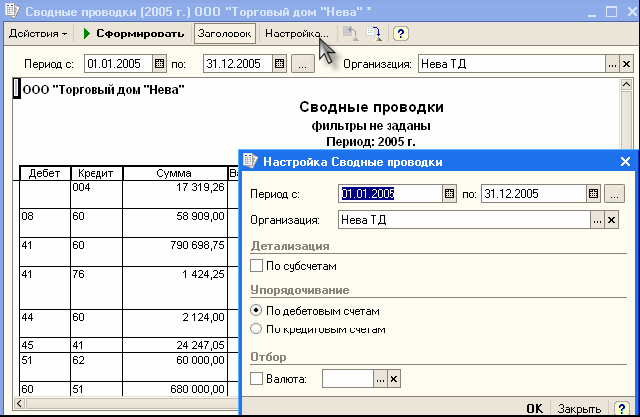 Глава 10. Анализ хозяйственной деятельности10.1. Общая характеристика и классификация отчетовТекущая бухгалтерская работа заключается в сборе сведений о фактах хозяйственной деятельности и в регистрации этих фактов в информационной базе путем ввода документов, с использованием типовых операций и ввода операций вручную. Информацию, полученную в результате обработки данных о совершенных хозяйственных операциях, называют результатной информацией. Средством получения результатной информации в компьютерной бухгалтерии являются отчеты. Все отчеты, которые можно сформировать в программе «1С: Бухгалтерия 8.0», можно классифицировать по назначению следующим образом: 1) Отчеты для контроля, анализа учетных данных и составления учетных регистров: ? Стандартные отчеты ? Специализированные отчеты ? Прочие отчеты 2) Отчеты для формирования внешней отчетности (регламентированные отчеты): ? Бухгалтерская отчетность ? Налоговая отчетность ? Статистическая отчетность Стандартные отчеты предназначены для просмотра результатов текущей бухгалтерской работы. По своей сути стандартные отчеты являются комплектом интерактивных документов – эффективным механизмом использования сводных и детализированных данных бухгалтерского учета в текущей работе. Использование стандартных отчетов позволяет оперативно чередовать ввод новых хозяйственных операций с просмотром бухгалтерских итогов – можно увидеть, как новая операция повлияла на данные бухгалтерского учета, скорректировать раннее введенную хозяйственную операцию. Благодаря этому создаются условия для быстрого обнаружения и исправления ошибки пользователя. Конфигурация содержит следующие стандартные отчеты: ? оборотно-сальдовая ведомость, ? шахматная ведомость, ? оборотно-сальдовая ведомость по счету, ? обороты счета, ? карточка счета, ? анализ субконто, ? обороты между субконто, ? карточка субконто, ? сводные проводки, ? отчет по проводкам, ? главная книга, ? диаграмма. В первую очередь стандартные отчеты предназначены для бухгалтеров предприятия. Специализированные отчеты создаются для получения специфической выборки информации и (или) для получения особого вида печатной формы. Обычно ориентируются на конкретный раздел учета. К специализированным отчетам относятся: ? Кассовая книга ? Книга покупок ? Книга продаж и др. Прочие отчеты – это отчеты, не входящие в состав стандартных, специализированных или регламентированных отчетов конфигурации. Их состав и структуру каждая организация определяет самостоятельно. Регламентированная отчетность представляет собой унифицированные формы для формирования бухгалтерской, налоговой и государственной статистической отчетности. Состав показателей регламентированного отчета регулируется нормативно-правовой базой. 10.2. Стандартные отчетыКак уже говорилось, удобными средствами работы с данными бухгалтерского учета являются стандартные отчеты. Отчеты представляют информацию, содержащуюся в журнале проводок, в виде, удобном для анализа и работы. При формировании отчета отбираются данные только из нужных проводок, которые представляются в сгруппированном и обобщенном виде. Вызов стандартных отчетов осуществляется из меню «Отчеты». Стандартный отчет формируется для определенного периода времени. Каждый отчет может быть просмотрен 
