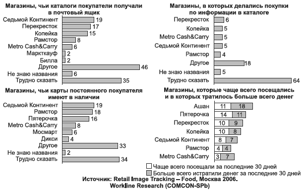 На рисунке 1.1 приведены данные опроса, позволяющие оценить эффективность некоторых ходов по продвижению. Как видно, связь между рассылкой каталогов, наличием дисконтных карт и реальными покупками хоть и прослеживается, но слабо. ![]() Рис. 1.1. Результаты опроса покупателей: каталоги, дисконтные карты, реальные покупки и деньги Эффективность дисконтных и бонусных программ уже сомнительна. Тем более, все это лишь игры с ценой, поэтому они будут иметь лишь временный эффект. Есть удачная цена – потребитель посещает торговую точку. У конкурента цена стала лучше – потребитель ушел. Понимают ли предприниматели, куда приведет такая конкуренция? А понимать надо. Конкурентная борьба должна осуществляться не столько за счет изменения цены, сколько на уровне брендов. Однако в настоящее время мы очень редко видим грамотные шаги, направленные на формирование нужного имиджа. Все продуктовые сети независимо от ценового позиционирования пытаются привлечь потребителя лишь обещаниями низких цен, рассылая свои листовки и используя рекламные возможности бессистемно, как попало. Все говорят о том, что нужно соответствовать запросам потребителей, но как это сделать и как выявить эти самые запросы хоть с какой-то долей вероятности? Неизвестно. Безусловно, пустить ситуацию на самотек и как-то пытаться подстроиться к велениям времени настоящего – самый простой шаг, который может быть сделан. Но, увы, такой подход не дает никакой уверенности в том, что светлое «завтра» будет таким же стабильным. Когда начнется массовый отток потребителей из торговой точки или торговой сети, обычно уже поздно делать косметические припарки и пить минеральные воды. Как мы знаем, умирающему больному это обычно не помогает. Впрочем, мы не можем настаивать на том, чтобы все предприниматели резко взялись за ум. Пока что мы лишь призываем подумать. И сделать какие-то выводы. 1.2. А нужен ли брендинг рознице?Роль брендинга в розничной торговле до сих пор сильно недооценена. Некоторым предпринимателям и управленцам кажется, что о брендинге им думать слишком рано, большинство же считает, что их магазин или сеть уже являются брендами. Но обе точки зрения, как правило, ошибочны. Для начала попробуем переубедить тех управляющих розничными сетями, которые считают, что заниматься построением бренда им не нужно. Брендинг, как и маркетинг – не прихоть, не средство израсходовать лишние деньги. На раннем этапе развития рынка конкуренция несущественна. Первый продукт на рынке, будь то первые в мире джинсы или первый в районе гипермаркет, потребляется просто потому, что он существует в природе. Но как только на рынок приходит второй игрок, возникает конкуренция, появляется потребность в технологиях ведения конкурентной борьбы и привлечении покупателя. И рождается сначала потребность в маркетинговой деятельности, а затем в брендинге, как в самом эффективном инструменте работы на рынке. Конкуренция – удел свободного рынка, ее не избежать, и рано или поздно с ней сталкивается каждый. Сети стихийно растут и строят свои магазины вплотную друг к другу, борьба за потребителя накаляется, и достаточно скоро возникнет момент, когда конкуренция поставит вопрос ребром: нет бренда – время закрывать бизнес. Это путь любого рынка. Еще лет двадцать назад брендом было, по сути, любое пиво, все сметало