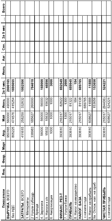 Глава 5Учет и отчетность ООО «Вектор». Вариант 3 (выручка – по кассовому методу) 5.1. Момент признания выручки – по кассовому методу 5.2. Учетная политика ООО «Вектор» на 2005 год 5.3. Бухгалтерский учет 5.3.1. Журнал хозяйственных операций 5.3.2. Расчетно-платежная ведомость за июнь (РПВ-3) 5.3.3. Начисление амортизации основных средств 5.3.4. Расчет налога на имущество 5.3.5. НДС 5.3.6. Оборотно-сальдовые ведомости 5.3.6.1. Оборотно-сальдовая ведомость за апрель 5.3.6.2. Оборотно-сальдовая ведомость за май 5.3.6.3. Оборотно-сальдовая ведомость за июнь 5.3.7. Покупки 5.3.7.1. Журнал учета счетов-фактур покупок за апрель 5.3.7.2. Книга покупок за апрель 5.3.7.3. Журнал учета счетов-фактур покупок за май 5.3.7.4. Книга покупок за май 5.3.7.5. Журнал учета счетов-фактур покупок за июнь 5.3.7.6. Книга покупок за июнь 5.3.8. Продажи 5.3.8.1. Журнал учета счетов-фактур продаж за апрель 5.3.8.2. Книга продаж за апрель 5.3.8.3. Журнал учета счетов-фактур продаж за май 5.3.8.4. Книга продаж за май 5.3.8.5. Журнал учета счетов-фактур продаж за июнь 5.3.8.6. Книга продаж за июнь 5.3.9. Учет авансов 5.3.10. Итоги 1 квартала, полугодия, 9 месяцев, года 5.4. Налоговый учет 5.4.1. Регистр «Доходы организации» 5.4.2. Регистр «Расходы организации» 5.4.3. Регистр «Прочие операционные расходы организации» 5.4.4. Расчет налога на прибыль по налоговому учету 5.4.5. Расчет налога на прибыль по бухгалтерскому учету 5.4.6. Расчет постоянных налоговых обязательств 5.4.7. Расчет отложенных налоговых обязательств 5.5. Отчетность в ИФНС и фонды за 6 месяцев 2005года 5.5.1. Бухгалтерский баланс (Форма 1) 5.5.2. Отчет о прибылях и убытках (Форма 2) 5.5.3. Налоговая декларация по НДС 5.5.4. Налоговая декларация по налогу на имущество 5.5.5. Налоговая декларация по налогу на прибыль 5.5.6. Заявление об отнесении к СМП 5.5.7. Расчет средней численности работников 5.5.8. Расшифровка выручки по видам деятельности 5.5.9. Расчет по авансовым платежам на ОПС 5.5.10. Расчет по авансовым платежам по ЕСН 5.5.11. Расчетная ведомость по средствам ФСС 5.6. Управленческий учет 5.6.1. Выручка и прибыль 5.6.2. Анализ налоговых платежей 5.6.3. Финансовые результаты деятельности за 2005 год 5.6.4. Движение денежных средств за 2005 год 5.1. Момент признания выручки – по кассовому методу![]() Данный вид учета используется довольно часто, особенно организациями с не–большой выручкой (менее 1,0 млн руб. в квартал) в первый год деятельности. Но, несмотря на то что этот метод ведения учета довольно экономичен, он име–ет значительный недостаток, напоминающий мину замедленного действия: как только выручка без НДС превысит 1,0 млн руб. в квартал, использовать по зако–нодательству кассовый метод нельзя. А это значит, что со следующего отчетного периода необходимо переходить на признание выручки по начислению. Соответ–ственно в данном отчетном периоде одновременно с текущей выручкой необхо–димо будет показать и дополнительную выручку, полученную за предыдущие пе–риоды. Возникает так называемый переходный период, в котором размер налогов может достигнуть критического для организации размера. 5.2. Учетная политика ООО «Вектор» на 2005 год1. Бухгалтерский учет вести в соответствии с действующими положениями по бухгалтерскому учету, используя рабочий план счетов бухгалтерского учета (приложение 1). Момент признания выручки для бухгалтерского учета считать по начислению. 2. Налоговый учет вести с использованием регистров налогового учета: • Регист