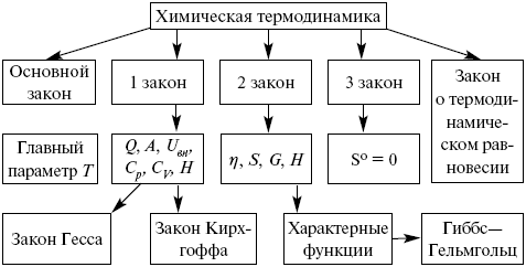 ЛЕКЦИЯ № 2. Химическая термодинамика Химическая термодинамика – наука, изучающая условия устойчивости систем и законы. Термодинамика – наука о макросистемах. Она позволяет apriori определить принципиальную невозможность того или иного процесса. Физические и химические явления в термодинамике исследуются с помощью основных законов термодинамики. Состояние рассматриваемых объектов в термодинамике определяется непосредственно измеряемыми величинами, характеризующими вещества; механизм процесса и сама структура вещества не рассматриваются. В химической термодинамике изучается применение законов термодинамики к химическим и физико-химическим явлениям. В ней рассматриваются главным образом: 1) тепловые балансы процессов, включая тепловые эффекты физических и химических процессов; 2) фазовые равновесия для индивидуальных веществ и смесей; 3) химическое равновесие. Тепловые балансы составляют на основе первого закона термодинамики. На основе второго и третьего законов проводят анализ фазового и химического равновесий. Изучение законов, которые описывают химические и физические равновесия, имеет огромное значение в химической термодинамике. Значение их позволяет решать задачи для производственной и научно-исследовательской работы. Рассмотрим основные задачи: 1) определение условий, при которых данный процесс становится возможным; 2) нахождение пределов устойчивости изучаемых веществ в тех или иных условиях; 3) устранение побочных реакций; 4) выбор оптимального режима процесса (давления, концентрации реагентов и т. д.). ![]() Основные понятия и определения 1. Системы и их классификация Система – тело или несколько тел, находящихся во взаимодействии между собой (диффузия, теплообмен, химическая реакция) и отделенных от окружающей среды. Состояние системы в термодинамике определяется с помощью набора переменных, называемых параметрами состояния и характеризующих термодинамическое состояние при равновесии. Всякое изменение, происходящее в системе и связанное с изменением хотя бы одного из параметров состояния, называется термодинамическим процессом. Системы имеют определенные границы, отделяющие их от внешней среды, и могут быть гомогенными или гетерогенными. Гомогенная система – система, в которой все макроскопические свойства в любых ее частях имеют одно и то же значение или непрерывно меняются от точки к точке. Примеры: ненасыщенные растворы, пар, газовые смеси. Составленные части гомогенной системы не могут быть выделены из нее с помощью простых механических приемов (фильтрования, отбора и т. д.). Гетерогенная система – система, составные части которой отделены друг от друга видимыми поверхностями раздела, на которых происходят резкие скачкообразные изменения какого-либо свойства. Примеры: насыщенный раствор какой-либо соли, находящийся в равновесии с кристаллами этой соли, две несмешивающиеся жидкости и т. д.). Составные части таких систем могут быть отделены друг от друга с помощью механических операций. Совокупность тел, энергетически взаимодействующих между собой и с другими телами, обменивающихся с ними веществом, называется термодинамической системой. Системы делят на изолированные (это те системы, которые не обмениваются энергией и веществом с другими системами), открытые (те системы, которые обмени