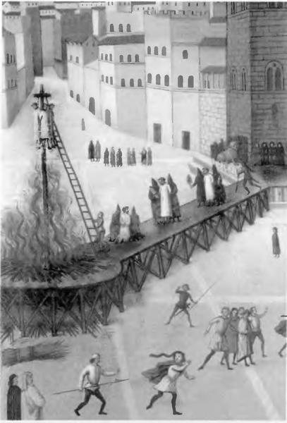 ИЛЛЮСТРАЦИИПортрет Данте, приписываемый Джованни дель Понте. Флоренция. Библиотека Риккардиана. Юный Данте. Фрагмент фрески, приписываемой Джотто XIV в. Флоренция. Палаццо подеста. Гаспар ван Виттел. Вид Флоренции. 1694 г. Флоренция. Питти Баптистерий Сан Джованни. Освящен в 1059 г. Флоренция. Дом, где родился Данте. Реконструкция XIX в. Флоренция Убийство Буадельмонте на Старом мосту (начало распри гвельфов и гибеллинов). Миниатюра Киджанского кодекса. Командующий флорентийским войском на Кампальдино рыцарь Аймерик де Нарбонн. Деталь гробницы Гильома де Дюрфора в монастыре блаженной Аннунциаты Столкновение враждующих итальянских феодалов. Миниатюра из манускрипта. Флоренция. Библиотека Лауренциана Смерть Генриха VII в Буонконвенто. Миниатюра Киджанского кодекса Тино да Камаино. Генрих VII. XIV в. Деталь саркофага в Пизе (Кампосанто) Сан-Джиминьяно — город башен. Дворец корпорации Лана. Флоренция. Труба для сброса нечистот. Остров Корсика Барджелло. Резиденция подеста. XIII–XIV вв. Флоренция. Барджелло. Внутренний двор Джироламо Романино. Фрагмент фрески «Се человек». 1519 г. Кремона. Собор Мазо ди Банко. Чудо святого Сильвестра с драконом. Фреска капеллы Барди ди Вернио церкви Санта Кроче во Флоренции. Конец 1330-х гг. Антонелло да Мессина. Святой Иероним в келье. Около 1465 или 1474 г. Амброджо Лоренцетти. Святой Николай дает приданое трем девушкам. 1327–1332 гг. Флоренция. Уффици. Витторе Карпаччо. История святой Урсулы: сон святой Урсулы. 1490–1495 гг. Паоло Учелло. Молодой человек. 1440 г. Шамберн. Музей истории искусств Художник флорентийской школы. Юноша. XV в. Флоренция. Уффицци Мазолино. Воскрешение Тавифа. Фрагмент фрески из капеллы Бранкаччи, XV в. Флоренция. Неизвестный художник флорентийской школы. Юноша. Рисунок XV в. Флоренция. Уффици. Джованни да Милано. Поругание Иоакима. Фрагмент фрески. 1365 г. Флоренция. Капелла Распуччини. Церковь Санта Кроче Филиппо Липпи. Коронование Марии. Фрагмент. 1441–1447 гг. Флоренция. Уффици Лука Синьорелли. Легенда о святом Бенедетто. Фрагмент фрески. XVI в. Нерчелли. Церковь Святого Христофора Гуго ван дер Гес. Триптих Портинария «Поклонение волхвов». Фрагмент. Около 1440–1482 гг. Фюренция. Уффици. Лаура. Миниатюра из книги Петрарки «Сонеты и канцоны на жизнь Мадонны Лауры». XV в. Флоренция. Библиотека Лауренциана. Карло Кривелли. Мария Магдалина. Фрагмент. XV в. Монтефиоре дель Азо. Церковь Святой Лучии. Гаудиенцио Феррари. Рождество Богородицы. Фрагмент фрески. XVI в. Верчелли. Церковь Святого Христофора Скеджа. Народная игра. Середина XV в. Флоренция. Уффици Амброджо Лоренцетти. Танцы. Фрагмент фрески «Аллегория Доброго и Злого правления». 1337–1339 гг. Сиена. Палаццо Публико. Франческо дель Косса. Занятия женщин. Фрагмент росписи Зала месяцев в Палаццо Скифанойя. Окончен в 1470–1471 гг. Феррара Симоне Мартини. Гвидориччо да Фольяно. 1328 г. Сиена. Палаццо Публико Выезд на охоту итальянских феодалов. Фрагмент миниатюры кодекса Ломбардской школы. XIV в. Скеджа. «Кассоне Адимари». 1440–1445 гг. Флоренция. Уффици Антонио Чочи. Скачки на старинной площади Санта-Мария Новелла. XVIII в. Флоренция Музей истории Флоренции. Якопо дель Селлайо. Пир Ассура. 1490 г. Деталь шкафа. Флоренция. Уффици Понте Санта Тринита и Понте Веккьо. Флоренция Кампальдино и Арно Неизвестный художник Приготовление шелковой ткани: окраска нитей. Трактат об искусстве приготовления шелков