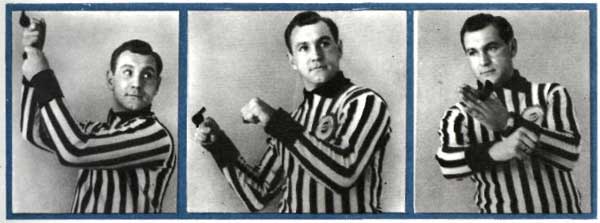 ЯЗЫК ЖЕСТОВ В ХОККЕЕ. 1. «Опасная игра. Штраф!» Жест указывает, что кто-то из игроков поднял клюшку выше плеч. 2. «Ай-ай-ай, тут и до драки недалеко!» Серия движений на уровне груди означает, что игрока неправильно оттолкнули руками. 3. «Грубая игра!» Рубящие движения по руке-соперника ударили клюшкой.
