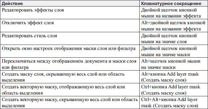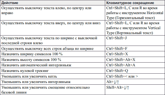 Чтобы максимально полно описать клавиатурные сокращения, в списках приводятся инструменты, не рассмотренные в данном издании.
