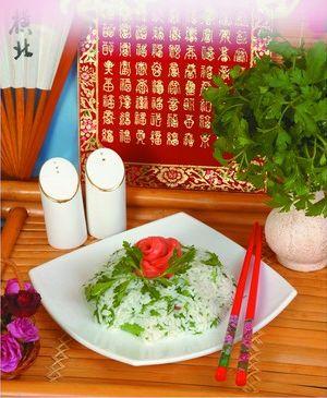 Стручковая фасоль с кунжутом ![]() 73 ккал, 20 мин, 4 порции. Продукты: 500 г стручковой фасоли 4 столовые ложки семян кунжута 3 столовые ложки сахара 2 столовые ложки соевого соуса соль Фасоль вымыть, нарезать кусочками длиной 4–5 см, отварить в подсоленной воде, выложить в дуршлаг и обдать холодной водой. Семена кунжута обжарить на сковороде без добавления масла, охладить, слегка потолочь в ступке и смешать с сахаром и соевым соусом. Фасоль разложить по тарелкам, полить приготовленной заправкой. Рис с красной фасолью 378 ккал, 45 мин, 4 порции. Продукты: 300 г риса 70 г мелкой красной фасоли 1 столовая ложка семян кунжута 1 чайная ложка соли 2–3 веточки петрушки Фасоль промыть, замочить на 2 ч в холодной воде, отварить и откинуть на сито. Рис промыть, залить водой так, чтобы она слегка покрывала его, и варить на маленьком огне под крышкой до готовности (по мере необходимости можно подливать горячую воду). Зелень петрушки вымыть. Семена кунжута обжарить на сковороде без добавления масла, потолочь в ступке с солью. В рис добавить фасоль, перемешать, разложить по тарелкам. Посыпать кунжутом с солью, украсить листиками петрушки. Рис с зеленым горошком 329 ккал, 45 мин, 2 порции. Продукты: 200 г риса 150 г свежего или замороженного зеленого горошка по 0,5 пучка зелени укропа и петрушки 1 помидор 1,5 столовой ложки мирин 1 столовая ложка семян кунжута 0,25 чайной ложки морской соли Горошек вымыть, бланшировать в кипящей воде в течение 1 мин, выложить в дуршлаг, обдать холодной водой. Рис промыть, залить 250 мл горячей воды, оставить на 15 мин, для набухания. Затем добавить мирин и варить на маленьком огне под крышкой 10 мин. Добавить горошек, аккуратно перемешать и варить еще 5–10 мин. Накрыть кастрюлю крышкой, оставить на 20 мин. Зелень укропа и петрушки вымыть. Семена кунжута обжарить на сковороде без добавления масла, смешать с морской солью, слегка потолочь в ступке. Помидор вымыть, нарезать кружочками. Рис разложить по тарелкам, посыпать смесью семян кунжута и соли, украсить кружочками помидора и веточками зелени. Рис с зеленым чаем и водорослями 389 ккал, 20 мин, 4 порции. Продукты: 500 г отварного риса 400 мл горячего зеленого чая 300 г жареного мяса курицы 1 пластина нори 1 столовая ложка семян кунжута 0,25 чайной ложки васаби Жареную курицу нарезать небольшими кусочками. Семена кунжута обжарить на сковороде без добавления масла, потолочь в ступе. Пластину нори разломить на несколько кусочков. Рис разложить по тарелкам, сверху положить кусочки мяса и водоросли. Посыпать семенами кунжута, добавить васаби, залить зеленым чаем и подать к столу.