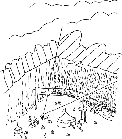 Лазер против облаков Как это ни прискорбно, погодные явления (в частности, дождь) до сих пор не подвластны человеку. Даже самые современные методы активных воздействий (например, засев облаков йодистым серебром) не позволяют вызвать дождь точно в заданном районе. Дедал намерен коренным образом исправить существующее положение дел. Он рассуждает так: если выбить электрон из капельки воды, находящейся в облаке, то эта капля приобретет положительный заряд. Выбитый электрон тут же попадет на какую-нибудь соседнюю каплю, которая таким образом получит отрицательный заряд. Под действием сил электростатического притяжения эти две капли сблизятся и сольются в одну. Многократно повторяя этот процесс внутри облака, можно постепенно вырастить капли до такого размера, что они выпадут в виде дождя. Для выбивания электронов из капель естественно было бы использовать фотоэлектрический эффект; по расчетам Дедала, для осуществления этого процесса подойдет ультрафиолетовое излучение с длиной волны 100 нм и короче. Нужно заметить, что число капелек в облаке несравнимо меньше числа фотонов в пучке света, так что необходимая мощность излучения не превышает нескольких ватт. Соответственно высокоэффективный «генератор погоды» фирмы КОШМАР представляет собой небольшой лазер ультрафиолетового диапазона, установленный на поворотной турели, что позволит легко направлять его в любую часть неба. ![]() Лазерный генератор погоды в действии. Наконец-то унылый британский климат будет укрощен. Любой фермер сможет выкроить из тучи порцию дождя по размерам своего поля. При организации на открытом воздухе какой-либо церемонии ее устроители загодя смогут очистить небо от облаков над местом ее проведения, направляя выпадающий дождь в ближайший канал или водоем. Еще один лазер вырежет в облаках просвет, сквозь который солнечные лучи прольются на площадь, где происходит собрание. Конечно, дыры в облаках будут производить довольно странное впечатление, но они достаточно быстро затянутся. Этот же метод можно использовать для того, чтобы писать на облаках различные объявления, рекламы и т. д., хотя эффект такого зрелища будет сильно «подмочен», когда на собравшихся внизу зевак из облаков неожиданно хлынет ливень[12]. New Scientist, December 4, 1980 Из записной книжки Дедала Согласно теории фотоэффекта, один фотон может выбить из капли один электрон. Это утверждение проверено на практике — вспомним классический опыт Милликена по определению заряда электрона с помощью капелек жидкости, заряженных под действием излучения. Первый ионизационный потенциал молекулы воды равен I = 12,56 эВ = 2,0 × 10-18Дж; соответственно для выбивания электрона из молекулы воды необходим фотон с частотой выше v = I/h = 3×1015 Гц (h = 6,626×10-34 Дж•с — постоянная Планка), что соответствует ультрафиолетовой области спектра: λ = c/v = 100 нм. Какая интенсивность излучения необходима для конденсации паров воды в облаке? Допустим, облако образовалось за счет охлаждения насыщенного водяными парами воздуха от 20°С (плотность насыщающих паров равна 0,017 кг/м3) до 10°С (плотность насыщающих паров равна 0,009 кг/м3). Тогда количество воды, сконденсировавшейся в капли тумана, составит (в расчете на 1 м3 объема) М = 0,017 - 0,009 = 0,008 кг/м3. Если предположить, что каждая капелька имеет диаметр 3 мкм (т.е. r = 1,5 × 10-6) и плотность ее составляет 1000 кг/м3, т