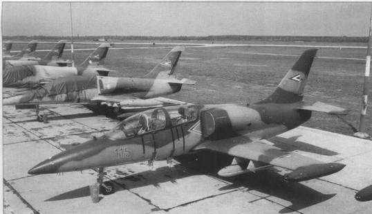 ВВС ВЕНГРИИ Венгерские ВВС в годы существования Организации Варшавского Договора оставались в тени военно-воздушных сил ГДР, Польши и Чехословакии. Пика численности венгерские ВВС достигли в 1956 г., но после известных событий венгерским летчикам перестали доверять, и значительная часть парка истребителей МиГ-15, МиГ-17, бомбардировщиков Ту-2 и штурмовиков Ил-10 была выведена из эксплуатации. В 1958 г. ВВС Венгрии были одними из самых малочисленных в Европе – три эскадрильи МиГ-15, эскадрилья Як-18, отдельные подразделения транспортных самолетов Ли-2, разведчиков Ил-28Р и вертолетов Ми-4. В 60-е годы начался быстрый количественный и качественный рост ВВС. На вооружение поступили истребители МиГ-19ПМ, а затем – МиГ-21Ф-13/ПФ, вертолеты Ми-8, реактивные учебно-тренировочные самолеты L-29 «Дельфин», транспортные Ил-14. В 1990 г. на вооружении ВВС Венгрии состояло 113 самолетов и 96 вертолетов. ВВС Венгрии эксплуатировали истребители МиГ-21 модификаций «Ф», «ПФ», «ПФМ», «МФ» и «бис», причем МиГ-21Ф-13 летали вплоть до 1978 г. В начале 60-х годов Советский Союз поставил Венгрии 48 истребителей МиГ-21Ф-13, в 1964 г. на вооружение поступили первые из 24 перехватчиков МиГ-21ПФ. В 1971 г. началась поставка первых из 48 МиГ-21МФ; в 1975-1979 гг. венгры получили 62 истребителя МиГ-21 бис, которые на Западе часто называют «МиГ-21 IV поколения». Помимо одноместных боевых истребителей на вооружение венгерских ВВС поступили спарки МиГ-21 У/УМ. В 1978 г. на вооружение 1-й эскадрильи 47-го истребительного авиаполка (авиабаза Папа) поступили 12 истребителей МиГ-23МФ и четыре двухместных МиГ-23УБ. В 1984 г. 3-я эскадрилья 31-го истребительного авиаполка (авиабаза Тацар) получила 12 истребителей-бомбардировщиков Су-22МЗ и три спарки Су-22УМЗ. Венгерские Су-22 комплектовались контейнерами ККР-1 с разведывательной аппаратурой. В 1960-1970-е гг. подготовка пилотов велась на поршневых самолетах Як-11, реактивных МиГ-15УТИ и L-29 «Дельфин». Транспортная компонента никогда не была в ВВС Венгрии сколько-нибудь существенной. В 1974 г. вылетавшие ресурс Ли-2 и Ил-14 заменили транспортными самолетами Ан-26, которые позже были дополнены парой Ан-24, предназначенных для VIP-перевозок. Из Чехословакии венгры получили четыре L-410. Первые четыре вертолета Ми-4 поступили на вооружение ВВС Венгрии в 1957 г., за ними в 1961 г. последовали 25 вертолетов Ми-1М/МУ. Первые вертолеты Ми-8 поступили на вооружение венгерских ВВС в 1968 г. Всего венгры получили три партии «восьмерок» по 15 машин в партии в 1968 г., 1972 и МиГ-21 УМ МиГ-29 МиГ-29 Ан-26 1973 г.г. Вертолетам Ми-1 в 1971 г. пришли на смену вертолеты Ка-26 – редчайший случай принятия на вооружение ВВС вертолета Ка-26. Венгрия получила 21 вертолет сосной схемы. Вертолеты Ка-26 эксплуатировались в ВВС Венгрии до 1989 г. Вертолетный парк был увеличен во второй половине 1970-х гг. путем закупки 20 вертолетов Ми-2 польского производства. В 80-е годы венгры получили три транспортно-боевых вертолета Ми-17 и два постановщика помех Ми-8ППА, а также один ВКП Ми-9. В 1978-1979 гг. на вооружение двух эскадрилий 87-го вертолетного авиаполка поступило 30 вертолетов Ми-24Д. В 1984-1985 гг. полк получил еще 12 «крокодилов» в варианте Ми-24В. В 1987-1988 гг. была принята довольно амбициозная программа развития ВВС, которая предусматривала вооружение истребителями-бомбардировщиками Су-22 еще одной эскадрильи, а истребителями МиГ-23 – еще двух, а также принятие на вооружение в 1988- 1989 гг. ис