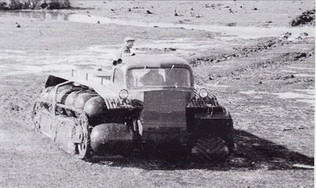 Автомобили для бездорожья Р.Г.Данилов Продолжение. Начало см. в "ТиВ" №7-11/2009 ВЕЗДЕХОД НА ЦЕПИ Испытания снегохода ЗИЛ-Э167 (см. «ТиВ» №4/2010 г.) выявили предельные значения проходимости колесного движителя. Машина, несмотря на огромный дорожный просвет (852 мм), не могла передвигаться по снегу глубиной более 1,5 м, не всегда преодолевала болота, т.е. не имела абсолютной проходимости. Это обстоятельство заставило главного конструктора-начальника СКБ ЗИЛ В.А. Грачева разрабатывать и испытывать машины с нетрадиционными ходовыми устройствами. В 1961 г. в печати США появилось сообщение о постройке экспериментальной тележки «Аэролл» на пневматических гусеницах. Масса тележки составляла 8,6 т, длина – 7 м, ширина – 4,6 м, двигатель имел мощность 136 кВт. В движителе использовались пневмокатки размером 600x600-150 мм. Оси 16 катков консольно закреплялись с обеих сторон, образуя гусеничную цепь. Пневмокатки могли свободно вращаться вокруг своих осей. Вес машины воспринимался непосредственно корпусом, лежащим на пневмокатках. В конструкции этого движителя предусматривалось низкое давление пневмокатков на грунт, способность корпуса перекатываться по каткам и объемное зацепление грунтозацепами (этими же пневмокатками) с большим расстоянием между ними. При движении на ровных участках пневмокатки не заглублялись в грунт, а прокатывались под днищем. При этом скорость передвижения корпуса машины превышала скорость перемотки ее гусениц в 2 раза. При движении по болоту, снегу или рыхлому грунту, когда катки заглублялись, трение между днищем корпуса и опорными пневмокатками становилось меньше трения катка о грунт, вращение катков прекращалось, они становились грунтозацепами, как у обычной гусеничной машины. Скорость движения корпуса машины при этом соответствовала скорости перематывания гусеничной цепи и уменьшалась вдвое по сравнению со скоростью на твердом грунте. Таким образом, катки либо вращались, либо нет -в зависимости от величины трения между днищем машины и пневмокатком и между пневмокатком и грунтом. Переход с одного режима на другой происходил автоматически, независимо от водителя, в соответствии с дорожными условиями. Принцип работы пневмокаткового движителя. Для определения тяговоходовых качеств новой системы движителя в СКБ ЗИЛ совместно с кафедрой К-3 МВТУ им. Н.Э. Баумана и НИИ шинной промышленности (НИИШП) был спроектирован и построен опытный макет вездехода с движителем подобного типа, названный ПКЦ-1 («Пневмокатковая цепь»). Проектированием узлов и агрегатов, предварительными расчетами механизма поворота, тяговой цепи, несущей конструкции рамы макета и выполнением рабочих чертежей занималось бюро «Подвески» СКБ ЗИЛ. Разработанные узлы и детали, рама корпуса, ведущие барабаны, звездочки, натяжной механизм изготавливались и доводились на механическом участке СКБ ЗИЛ. По договору о техническом сотрудничестве НИИШП поставил СКБ ЗИЛ пневмокатки размером 24x36-6, бывшие в употреблении, но годные для установки на опытную машину. Оси катков делали в производственных мастерских МВТУ им. Н.Э. Баумана по чертежам кафедры К-3. Установка силовой передачи и ведущего моста осуществлялись по месту в СКБ ЗИЛ с предварительной прорисовкой на компоновочном чертеже. В работе над ПКЦ-1 принимали участие: конструкторы В.А. Грачев (руководитель работы
