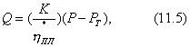 где Р - напряжение сдвига, поддерживающее течение жидкости, Па; - деформация (течение) жидкости; Уравнение (11.1) представляет собой уравнение прямой, представленной на рис. 11.2 . Вязкость - величина постоянная, не зависящая от Р. Закон Пуазейля выражает зависимость объема жидкости, протекающей через трубу или капилляр, от давления:
