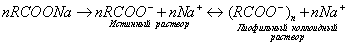СОЛЮБИЛИЗАЦИЯ Солюбилизацией называется явление растворения веществ в мицеллах ПАВ. Солюбилизация - самопроизвольный и обратимый процесс. В водных мицеллярных системах солюбилизируются вещества, не растворимые в воде, например, бензол, органические красители, жиры. Это обусловлено тем, что ядро мицеллы проявляет свойства неполярной жидкости. Солюбилизат - вещество, солюбилизированное раствором ПАВ. Солюбилизатор - ПАВ, которое солюбилизирует неполярную жидкость. Мольная солюбилизация (Sm) - количество солюбилизатора, отнесенное к 1 молю мицеллярного ПАВ. Способ включения молекул солюбилизата в мицеллы в водных растворах зависит от природы вещества. Неполярные углеводороды внедряются в мицеллы, располагаясь в углеводородных ядрах мицелл. Полярные органические вещества (спирты, амины, кислоты) встраиваются в мицеллу между молекулами ПАВ так, чтобы их полярные группы были обращены к воде, а липофильные части молекул ориентированы параллельно углеводородным радикалам ПАВ. Для неионогенных ПАВ характерен и третий способ включения солюбилизата в мицеллы: молекулы солюбилизата, например, фенола, не проникают внутрь мицеллы, а закрепляются на их поверхности, располагать между беспорядочно изогнутыми полиоксиэтиленовыми цепями. При солюбилизации неполярных углеводородов в ядрах мицелл углеводородные цепи раздвигаются, в результате размер мицелл увеличивается. Способность коллоидных ПАВ солюбилизировать углеводороды возрастает с ростом концентрации ПАВ. Солюбилизация в водных растворах ПАВ обычно увеличивается с повышением гидрофобности ПАВ и гидрофильности солюбилизата. Явление солюбилизации находит широкое применение в различных процессах, связанных с использованием ПАВ, отметим некоторые из них: • эмульсионная коагуляция; • изготовление эмульсионных смазочных жидкостей; • изготовление фармацевтических препаратов; • изготовление пищевых продуктов. Солюбилизация является важнейшим фактором моющего действия ПАВ. Она также входит, как одно из звеньев процесса обмена веществ, в жизнедеятельность живых организмов. 4.1.3. КРИТИЧЕСКАЯ КОНЦЕНТРАЦИЯ МИЦЕЛЛООБРАЗОВАНИЯ (ККМ) И ЕЕ ОПРЕДЕЛЕНИЕ ФАКТОРЫ, ВЛИЯЮЩИЕ НА ВЕЛИЧИНУ ККМ На величину ККМ влияют: • строение и длина углеводородной цепи; • характер полярной группы; • наличие в растворе индифферентных электролитов и неэлектролитов; • температура. Влияние двух первых факторов отражает формула