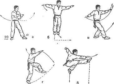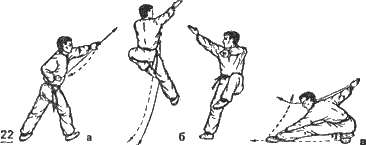 В 50-х годах нашего столетия в Китае были упорядочены некоторые традиционные стили, введена единая терминология и базовая техника. Так появилось спортивное направление ушу «Длинный кулак» (Чань-цюань). Это же название часто можно встретить в древнем китайском ушу, однако не следует его путать с современным спортивным стилем. Созданный в XX в. «Длинный кулак» составлен из движений родственных стилей по принципу зрелищности и пользы для основных групп мышц и связок. Он включает в себя элементы 12 стилей: Дза-цюань, Хуа-цюань, Шао-линь-цюань, Пао-цюань, Хуа-цюань (существует несколько стилей Хуа), Тантуй, Дитан, Фанцзи, Чоцзя, Мицзун, Бадц-зи, Пигуа. Таким же путем шло создание современного направления «Южный кулак» (Нан-цюань), куда вошли стили южного направления ушу. Третью группу Тайцзи составили стили этого направления. Общая терминология и методика преподавания позволили занимающимся одновременно изучать несколько стилей за сравнительно сжатые сроки. Однако если в традиционном искусстве ушу использовались индивидуальные особенности занимающегося, то в спортивном требуется точное выполнение нормативов, что приводит к росту физического совершенствования в ущерб комплексной системе. В настоящее время все движения сгруппированы по степени сложности. Поэтому занимающийся, не способный по какой-либо причине выполнить один трудный элемент, не может двигаться дальше. Спортивные направления ушу предусматривают выполнение индивидуальных комплексов, групповых упражнений (в парах, втроем), многоборье и вольный стиль Сань-да или Сань-шоу. В свою очередь, индивидуальные комплексы подразделяются на упражнения без предметов (в стиле различных «кулаков»), с короткими предметами (меч, сабля) и с длинными предметами (палка, копье). Трехзвенная и многозвенная палки, цепь, парная сабля, алебарда и другие виды китайского оружия (всего их 18) также используются при выполнении упражнений. К индивидуальным комплексам относится один вид упражнений в парах: сталкивание с места, требующее умения свести на нет усилия партнера и своими действиями столкнуть его с места. Комплексы (тао) упражнений без предметов содержат ряд трудных элементов: например, различные виды прыжков с ударом рукой по стопе без поворота и с поворотом на 180° и на 360°; приземление после прыжков в шпагат или падение на бок; прыжок с махом ноги и с поворотом плеча назад, на 360°; «бедуинское» колесо; маховое сальто вперед; подъем разгибом и чисто акробатические движения (рондат, фляк, сальто). Чтобы получить младший спортивный разряд, надо выполнить тао за 1 минуту 20 секунд, а для высшего — за 1 минуту. Комплексы упражнений с предметом выполняются за 40 секунд. Помимо перечисленных выше элементов, в тао с предметами включаются уколы, вращения, крутки, обмахивания, обводки, рубки, переброски, подкидывания, выпады, удары о землю, то есть упражнения, характерные для действий с оружием. В групповых упражнениях, которые называются «обусловленный спарринг», применяются как нападающие, так и защитные приемы. В многоборье входит шесть видов упражнений: два в стиле одной из популярных школ, три с разными предметами (с короткими, длинными) и упражнения с соперником (вдвоем, втроем, при разном сочетании видов предметов). Участвующие в соревнованиях в вольном стиле Сань-шоу распределяются по девяти вес